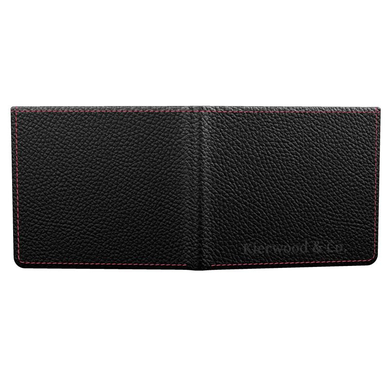 Precision in every line. Purpose in every stitch. The Kierwood Ledger Wallet redefines classic craftsmanship through textured full-grain nappa leather and the signature Rouge de Kierwood threading — a subtle flash of crimson that signals legacy without needing to shout.Its balanced structure holds eight card slots and dual bill compartments, tailored for the modern minimalist who refuses compromise. The textured leather exterior ages with quiet dignity, developing character over years of movement, while the crimson detailing remains a constant—an unspoken mark of the Founder’s standard.